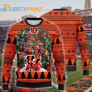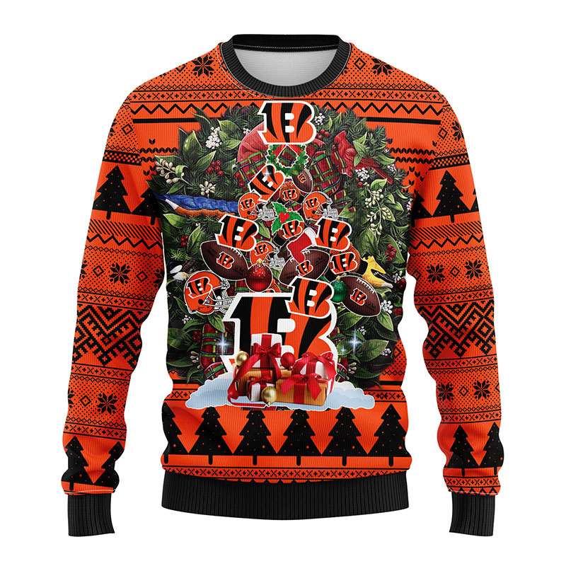 Cincinnati Bengals Christmas Wreath Pine Tree Shape Ugly Sweater – Cincinnati Bengals Ugly Sweater