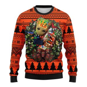 Cincinnati Bengals Groot Hug American Football Christmas Ugly Sweater – Bengals Ugly Christmas Sweater