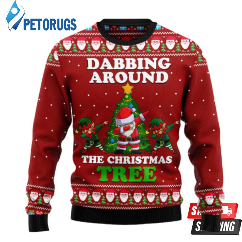 Dabbing Around The Christmas Tree Santa Claus And Goblin Ugly Christmas Sweaters