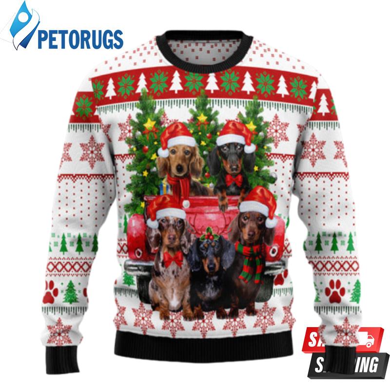 Dachshund Red Truck Ugly Christmas Sweaters