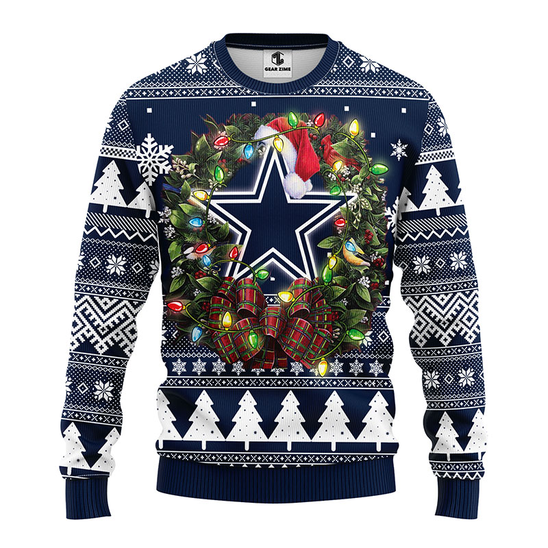Dallas Cowboys Wreath Light Up Ugly Christmas Sweater – Dallas Cowboys Ugly Christmas Sweater