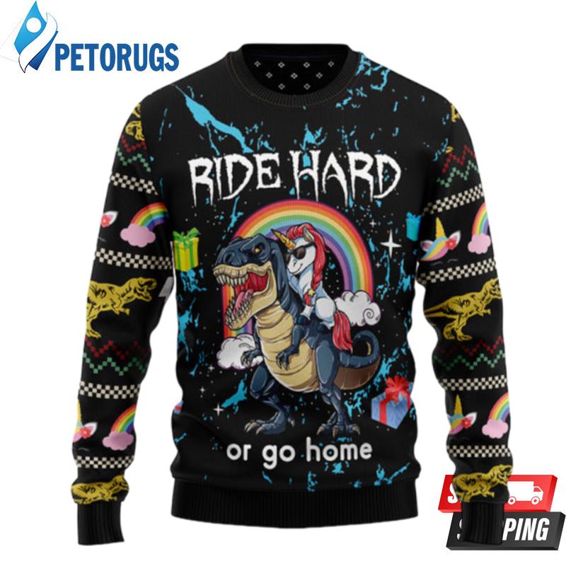 Dinosaur Unicorn Ride Hard Ugly Christmas Sweaters
