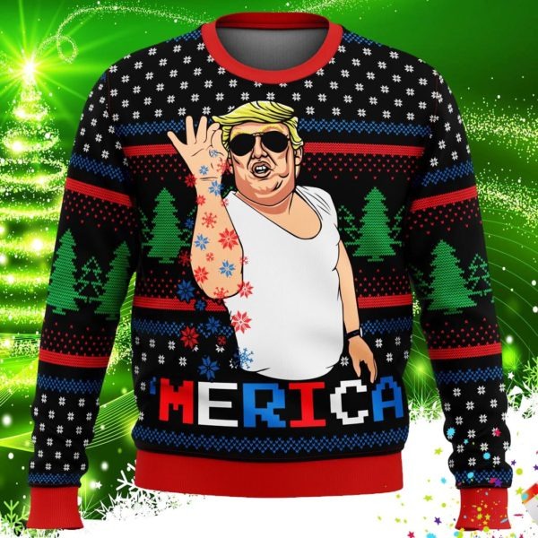 Donald Trump Salt Bae Merica Knit Wool Sweater – Trump Ugly Sweater