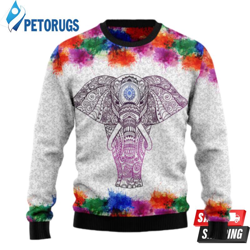 Elephant Mandala Color Ugly Christmas Sweaters