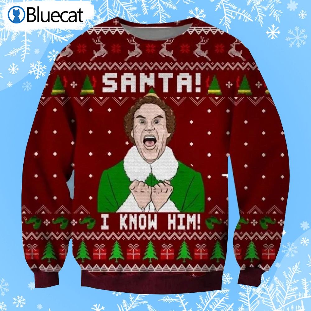 Elf Rotten Tomatoes Santa I Know Him Ugly Christmas Sweaters