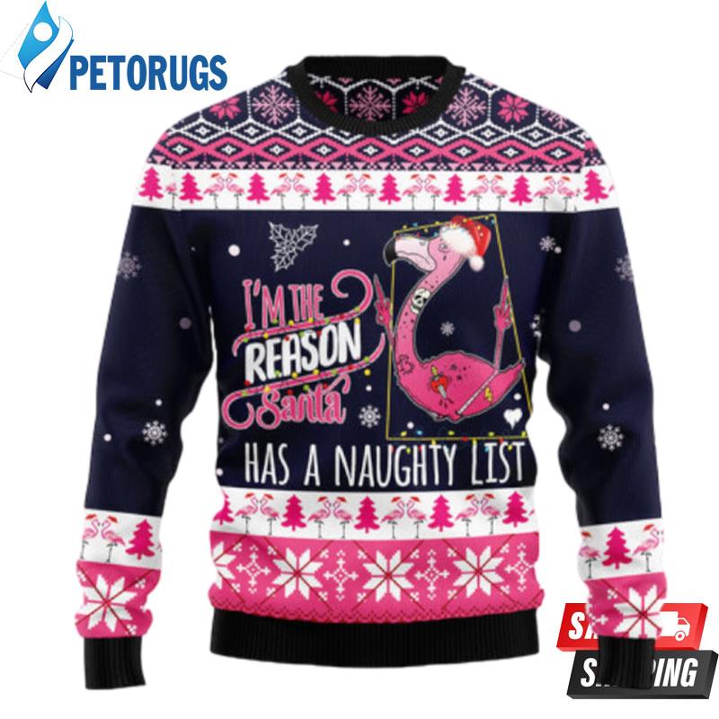Flamingo I Am The Reason Santa Has A Naughty Ugly Christmas Sweaters