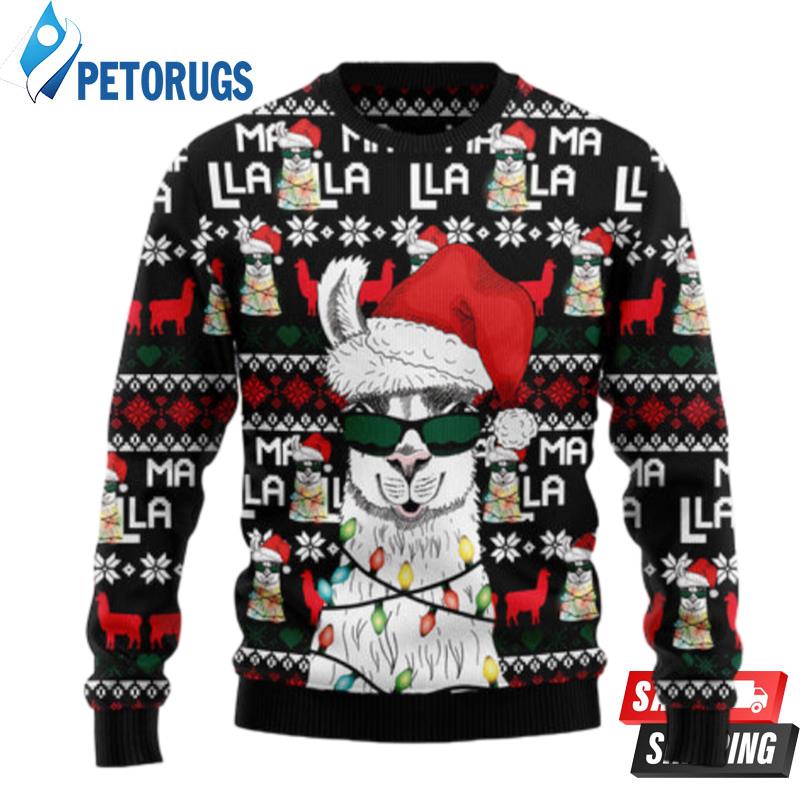 Funny Llama Christmas Light Ugly Christmas Sweaters