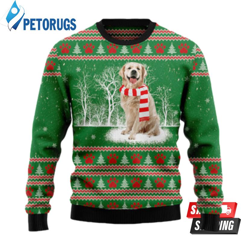 Golden Retriever Winter Tree Ugly Christmas Sweaters