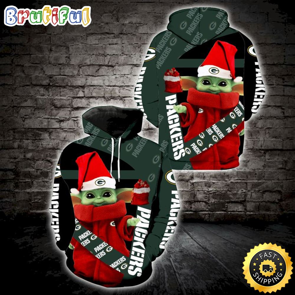Green Bay Packers Baby Yoda Christmas 3d Hoodie All Over Printed