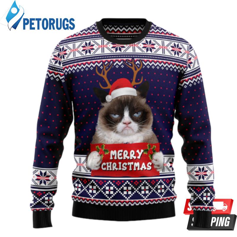 Grumpy Cat Merry Christmas Xmas Santa Hat Ugly Christmas Sweaters