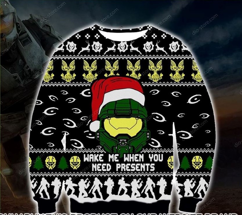 Halo Wake Me When You Need Presents Knitted Limited Edition Ugly Christmas Sweaters