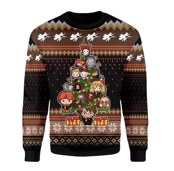 Harry Potter Characters Chibi With Christmas Tree Christmas Ugly Sweater