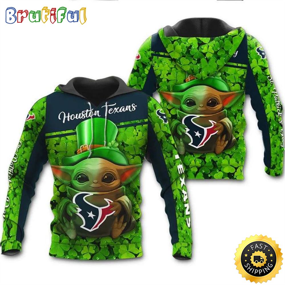 Houston Texans Baby Yoda St Patrick’s Day 3d Hoodie All Over Printed