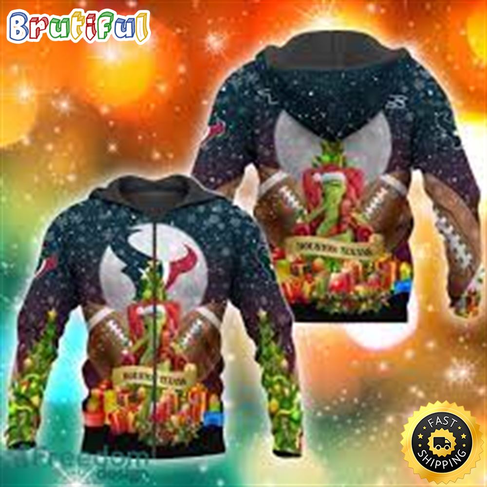 Houston Texans NFL Grinch Christmas Tree 3D Hoodie Pullover Prints
