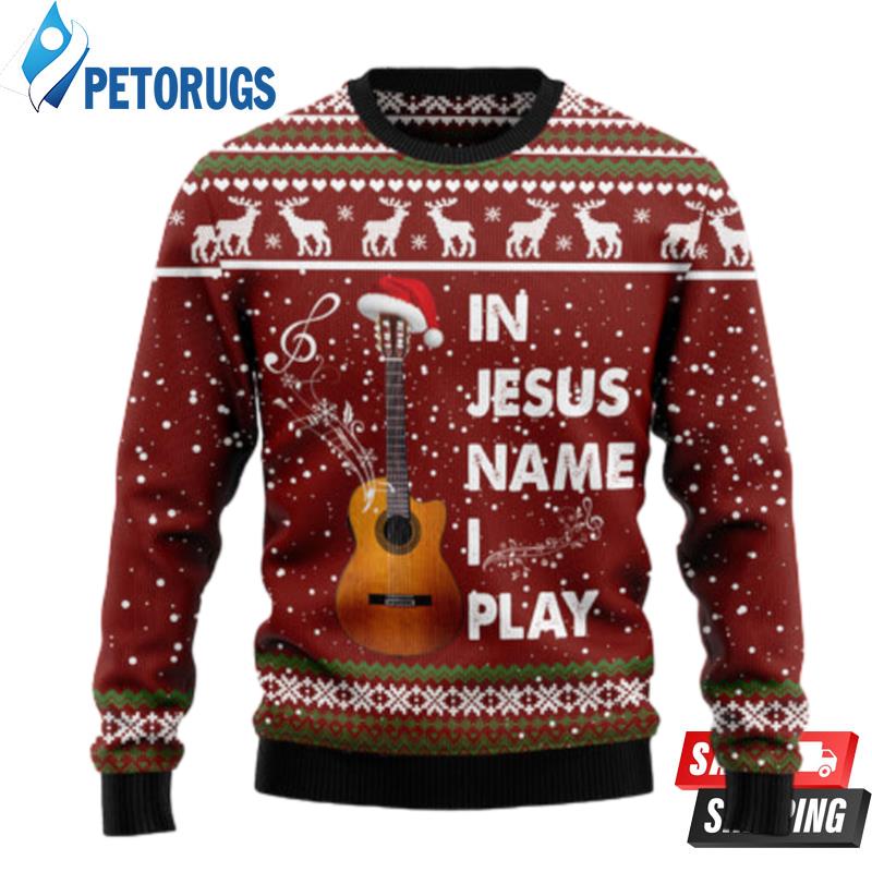 In Jesus Name I Play Guitar Ugly Christmas Sweaters