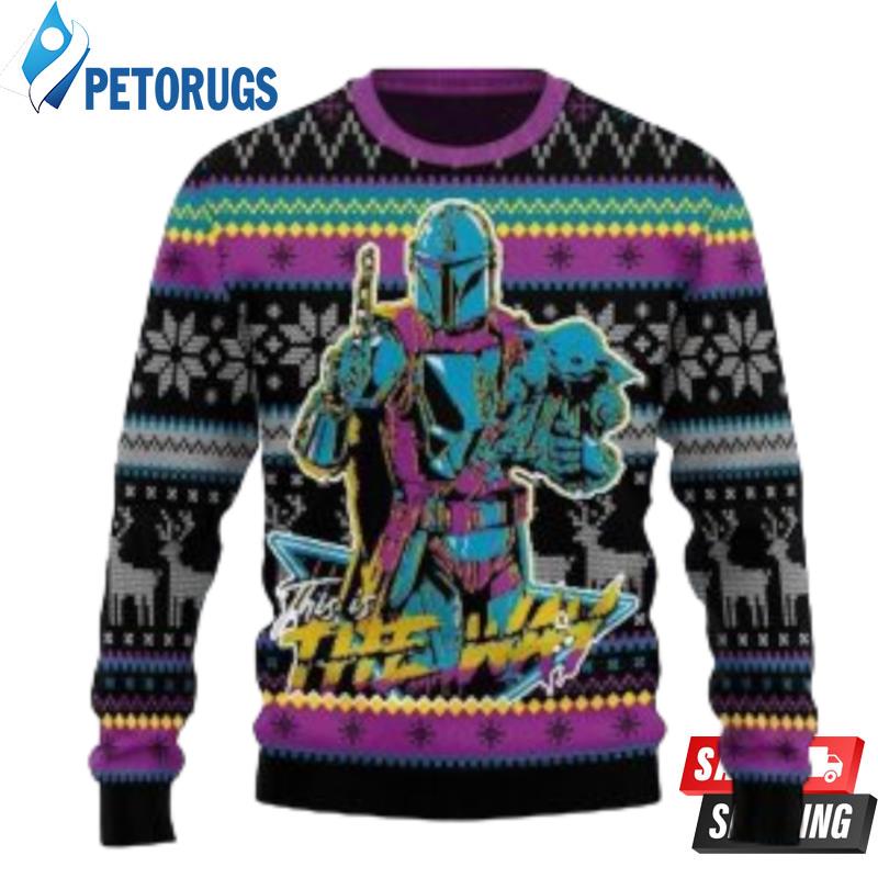 Mandalorian Boba Fett Hold Baby Yoda Colorful Christmas Ugly Christmas Sweaters