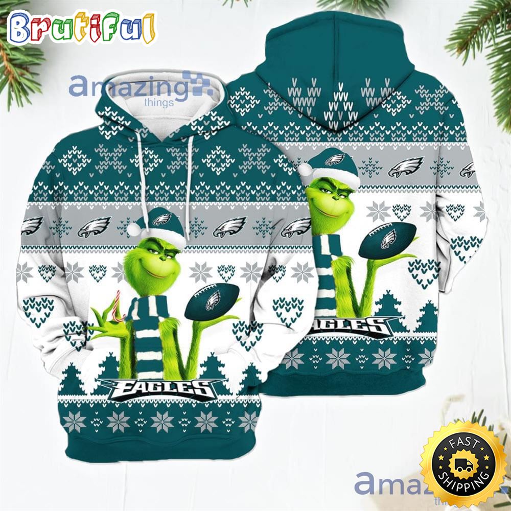 Merry Christmas 2023 Super Bowl American Grinch Cute Eagles 3D Hoodie Christmas Gift For Men Women