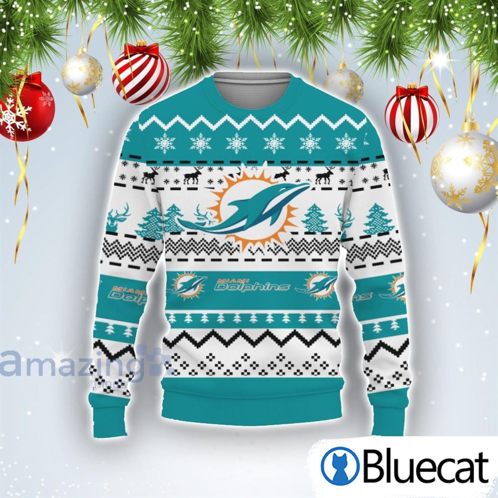 Merry Christmas Snow Pattern Funny Cute Miami Dolphins Ugly Christmas Sweaters