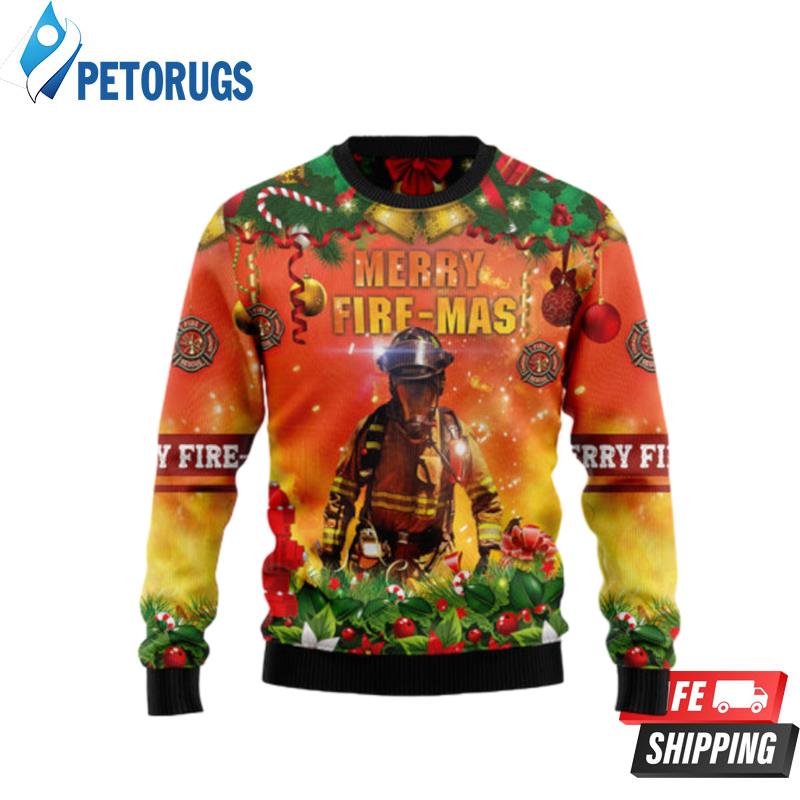 Merry Fire Mas Firefighter Ugly Christmas Sweaters