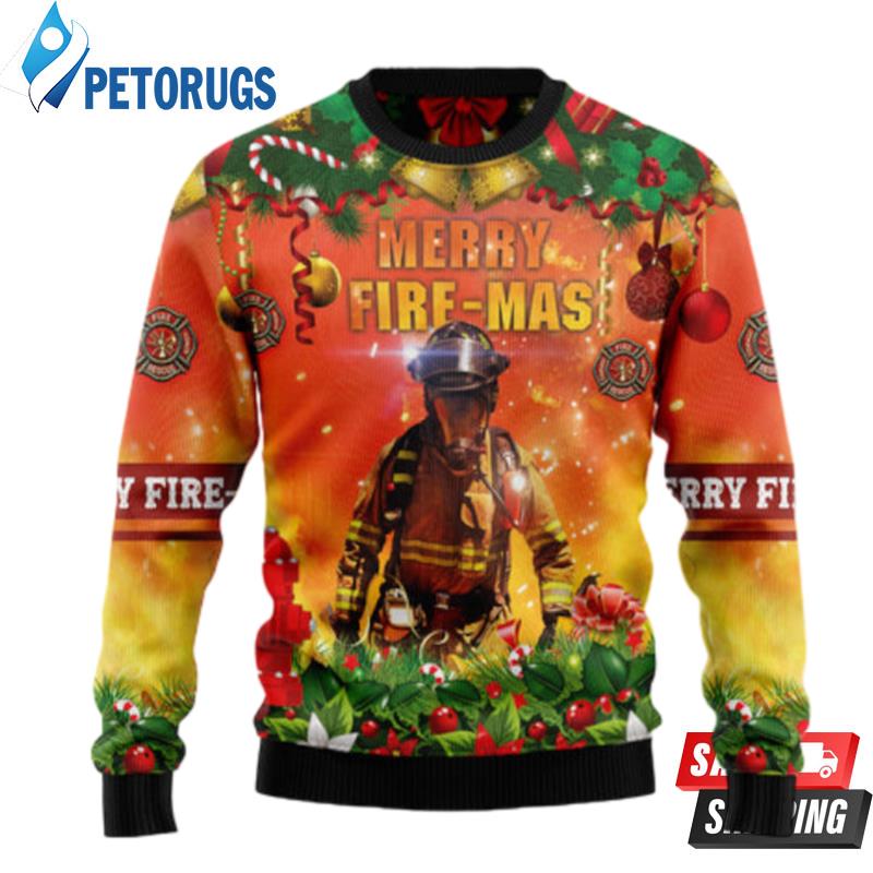 Merry Fire Mas Firefighter Ugly Christmas Sweaters