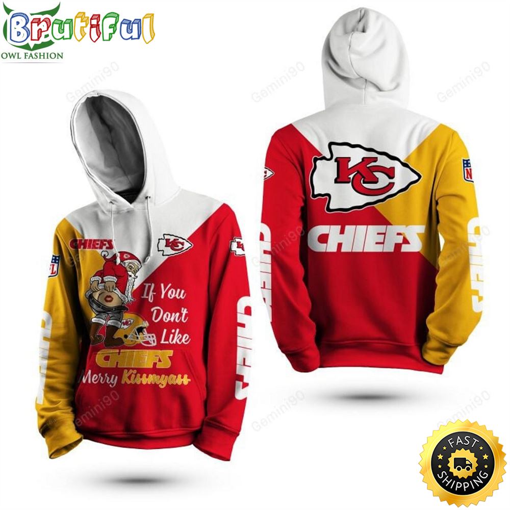 Merry Kissmyass Santa Claus Xmas Kansas City Chiefs NFL 3d shirt hoodie sweatshirt Shop Owl Fashion is made with high-quality materials, this collection is designed to keep you warm and comfortable while showing your team pride. Don’t miss out on owning this limited edition!! There are 3 choices of this design for you: Hoodie, Zipper Hoodie and Fleece Zipper Hoodie.