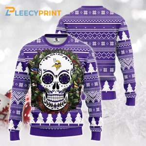 Minnesota Vikings Skull Flower Ugly Christmas Ugly Sweater