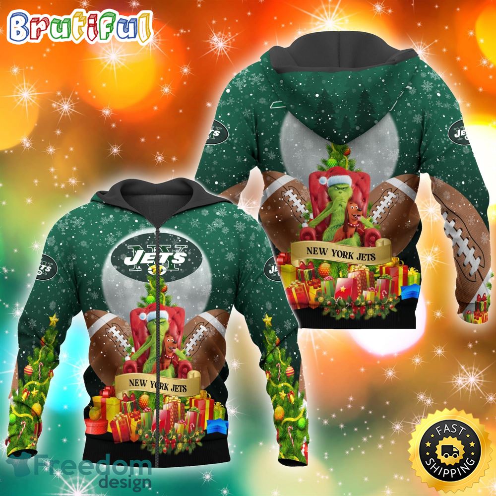 New York Jets NFL Grinch Christmas Tree 3D Hoodie Pullover Prints
