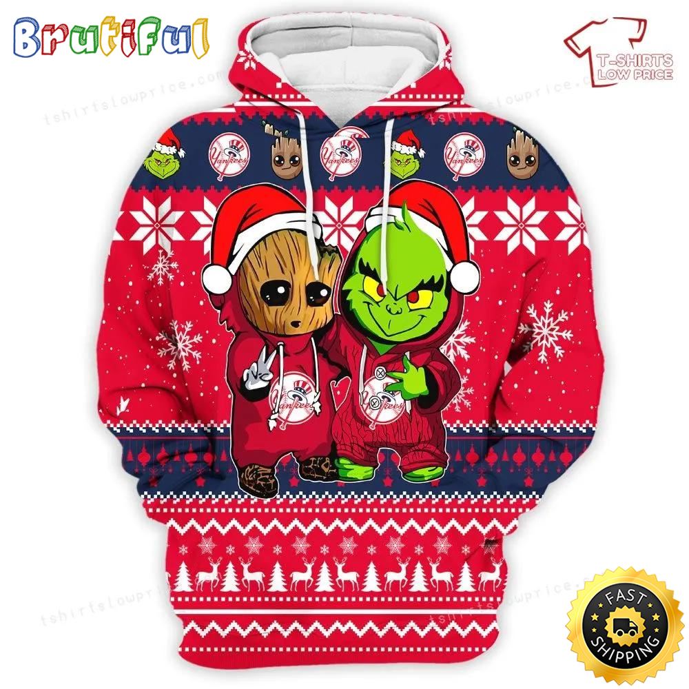 New York Yankees Baby Groot And Grinch Best Friends Football American Christmas 3D Hoodie