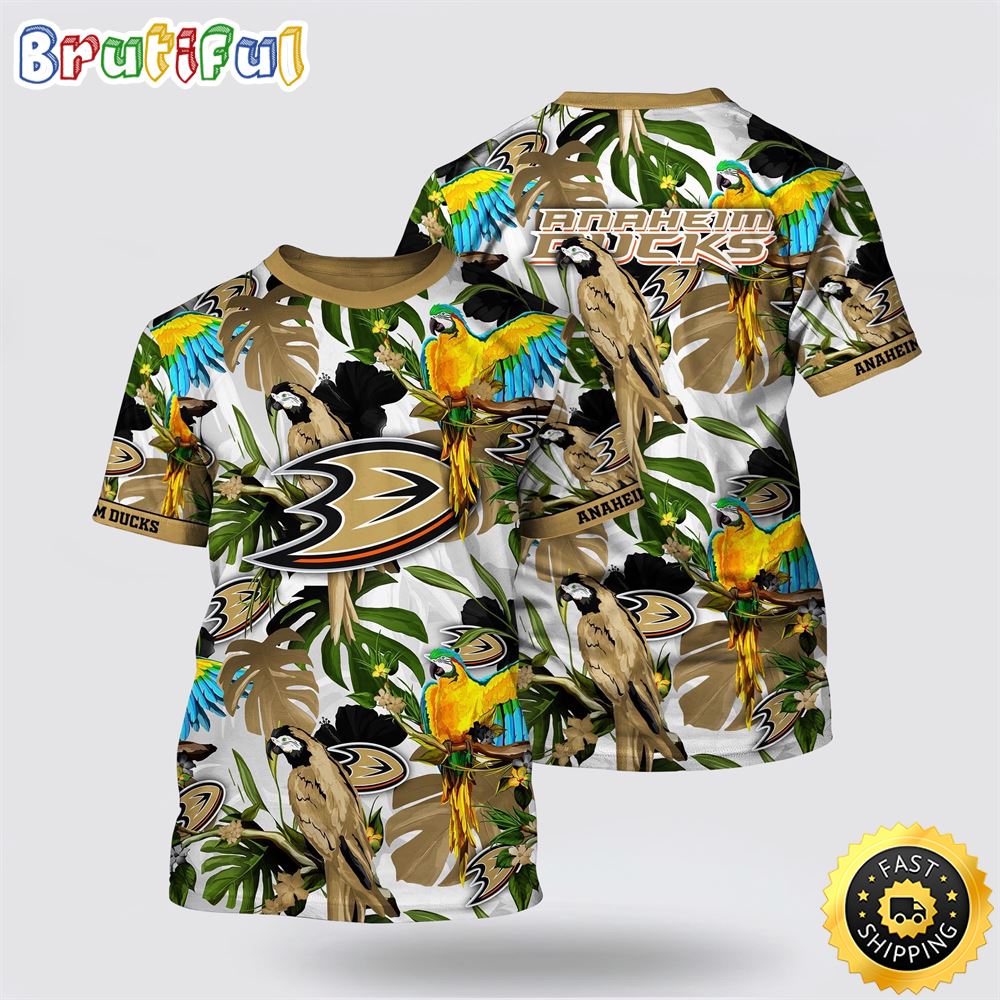 NHL Anaheim Ducks All Over Print T Shirt Tropical Parrot Pattern Summer T Shirt