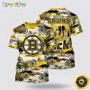 NHL Boston Bruins All Over Print T Shirt Tropical Begonia Flower Pattern Summer T Shirt