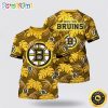 NHL Boston Bruins All Over Print T Shirt Tropical Leaf Pattern Summer T Shirt
