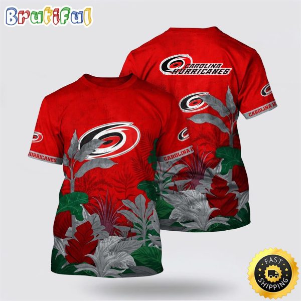 NHL Carolina Hurricanes All Over Print T Shirt Tropical Forest Motifs Summer T Shirt