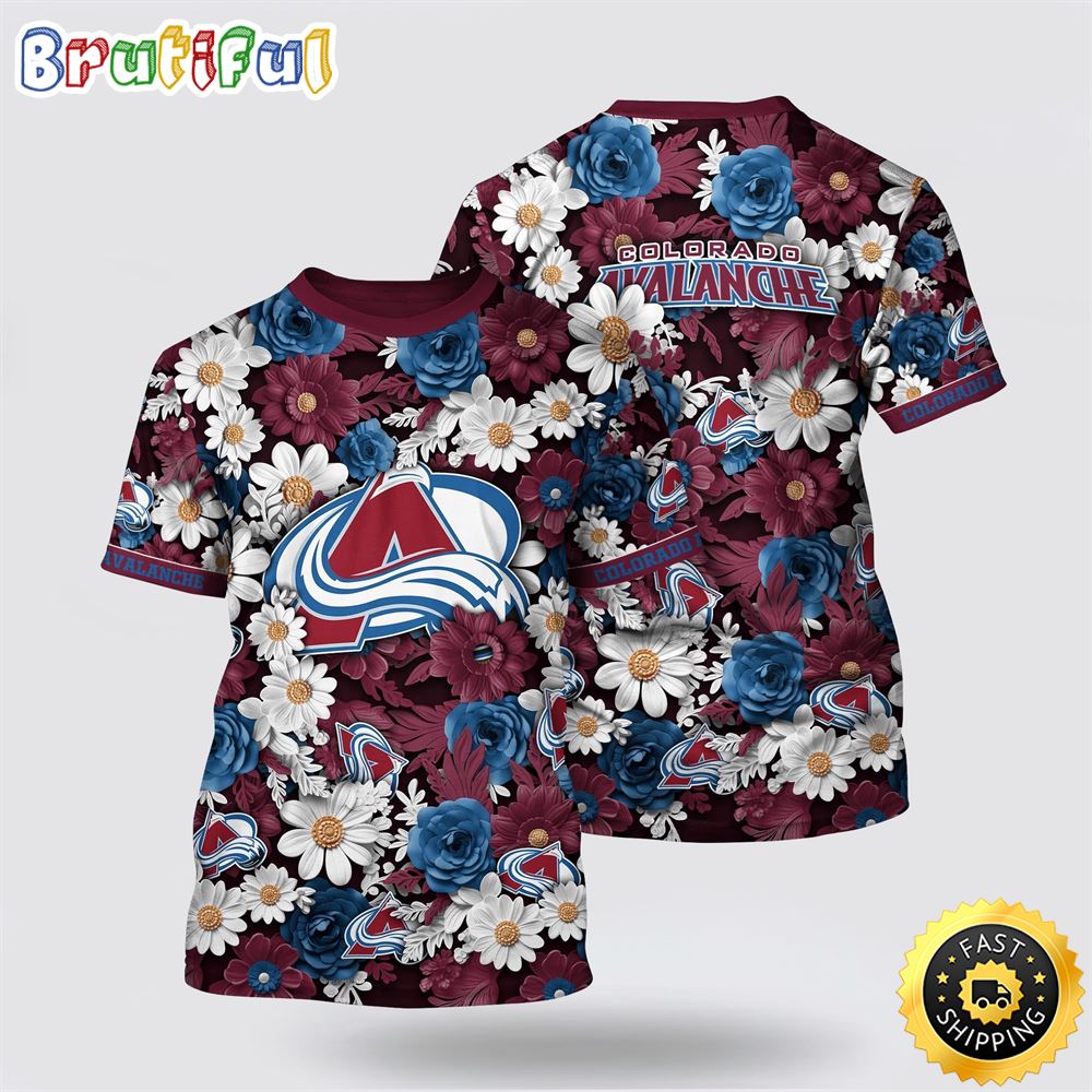 NHL Colorado Avalanche All Over Print T Shirt Tropical Begonia Flower Pattern Summer T Shirt
