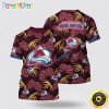 NHL Colorado Avalanche All Over Print T Shirt Tropical Leaf Pattern Summer T Shirt