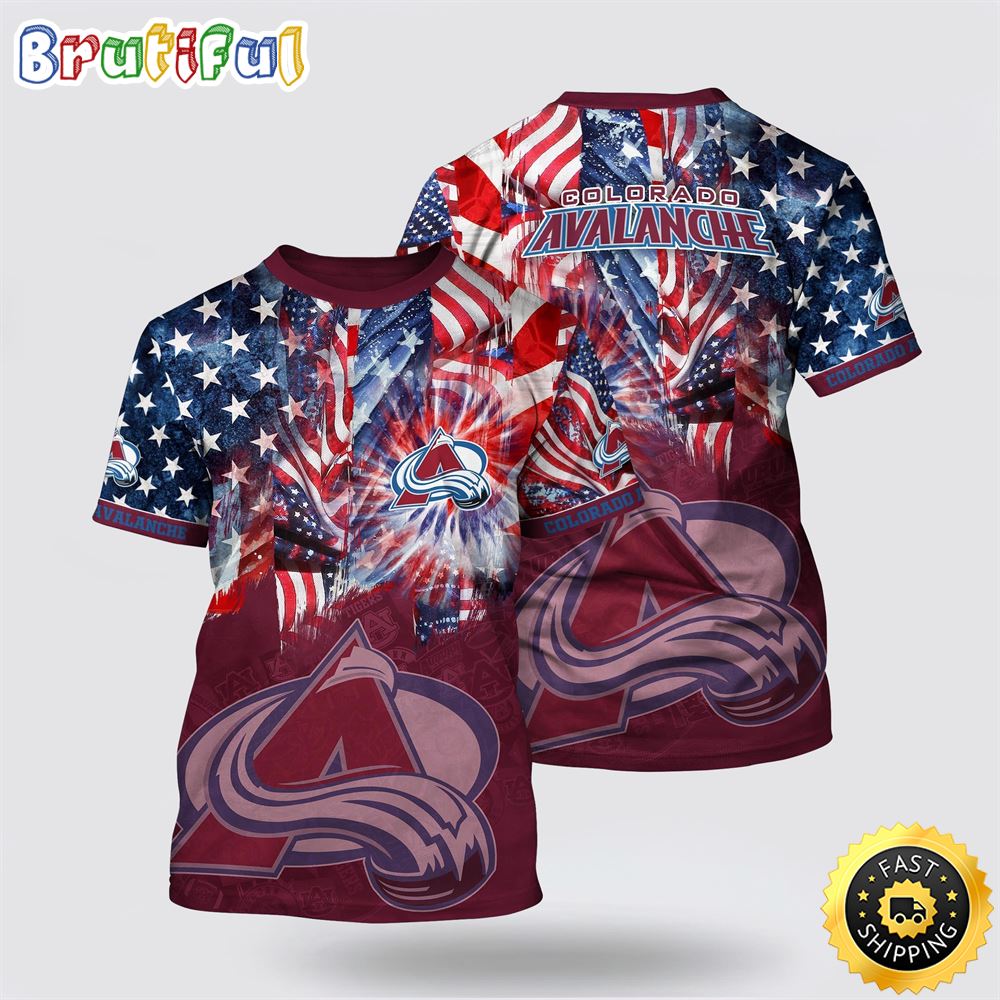 NHL Colorado Avalanche All Over Print T Shirt With American Independence Day Pattern Summer T Shirt