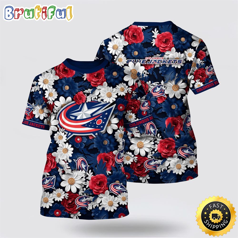 NHL Columbus Blue Jackets All Over Print T Shirt Tropical Begonia Flower Pattern Summer T Shirt