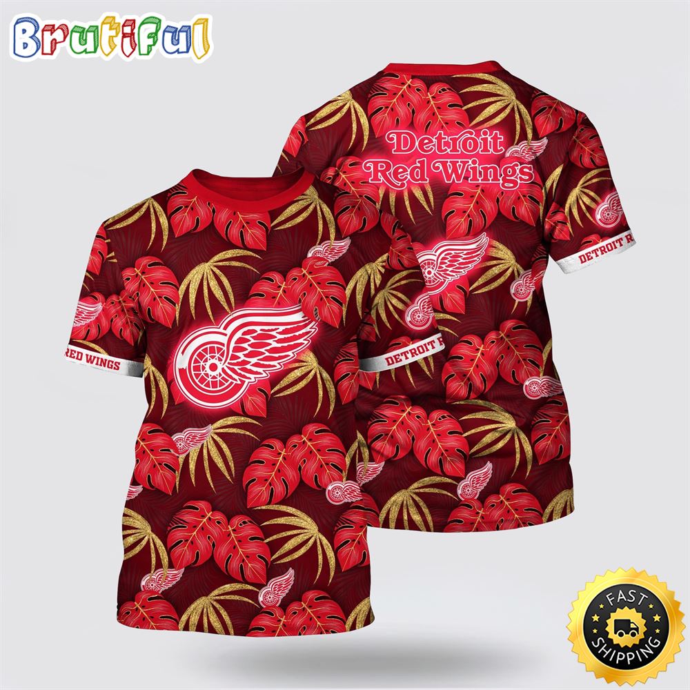 NHL Detroit Red Wings All Over Print T Shirt Tropical Motifs Summer T Shirt