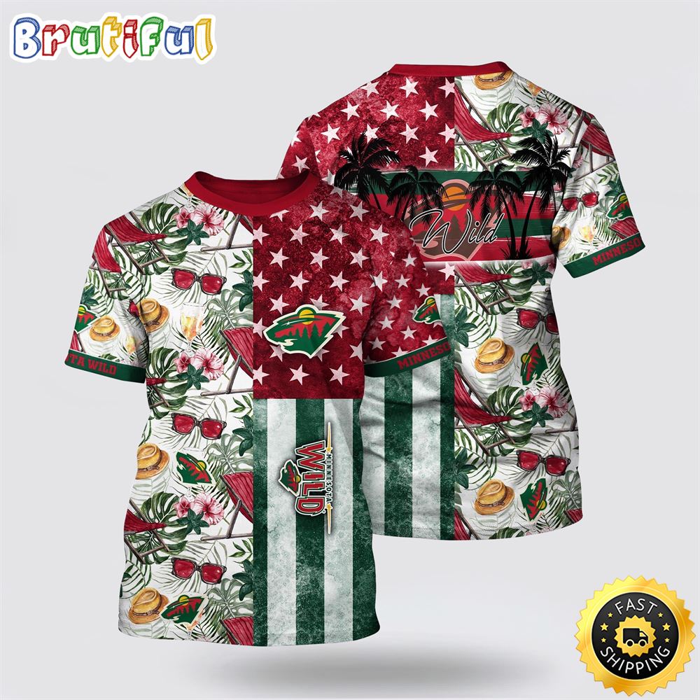 NHL Minnesota Wild All Over Print T Shirt Tropical Hat And Glasses Pattern Summer T Shirt