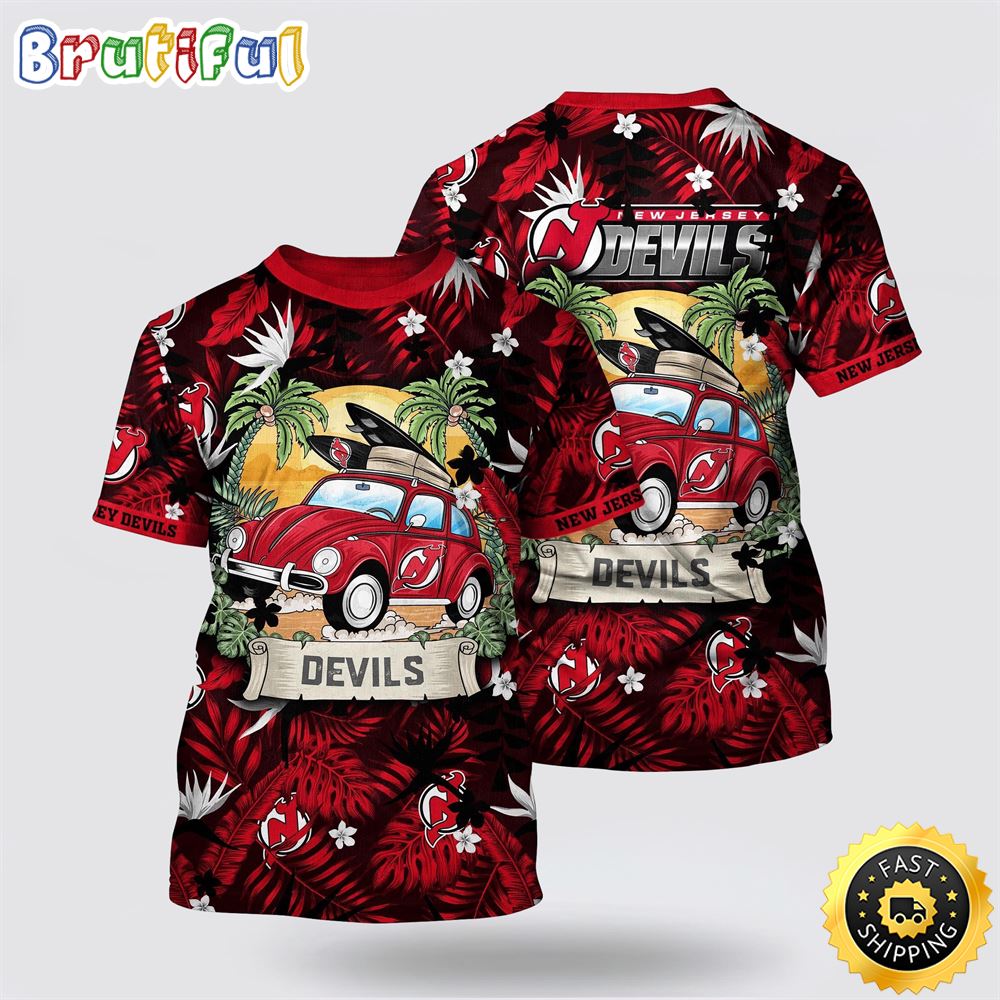 NHL New Jersey Devils All Over Print T Shirt Tropical Forest Motif Car Traveling Summer T Shirt