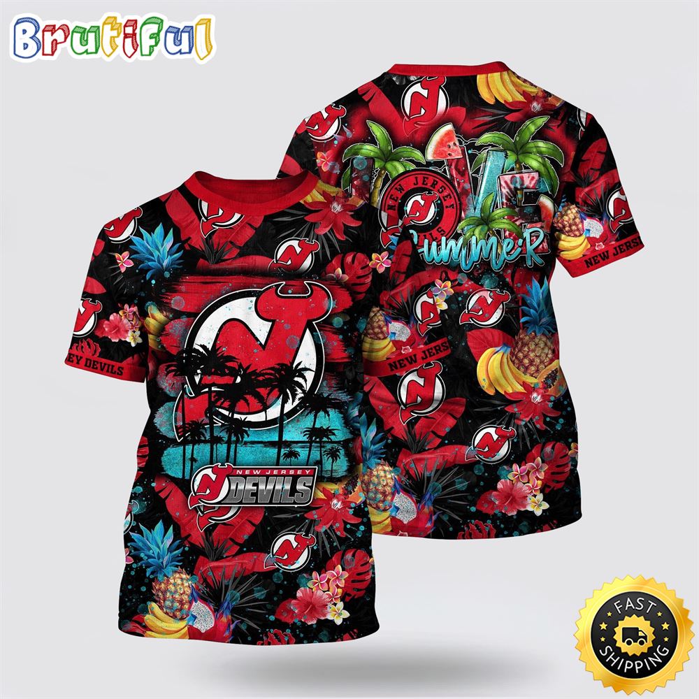 NHL New Jersey Devils All Over Print T Shirt With Tropical Fruits Summer T Shirt