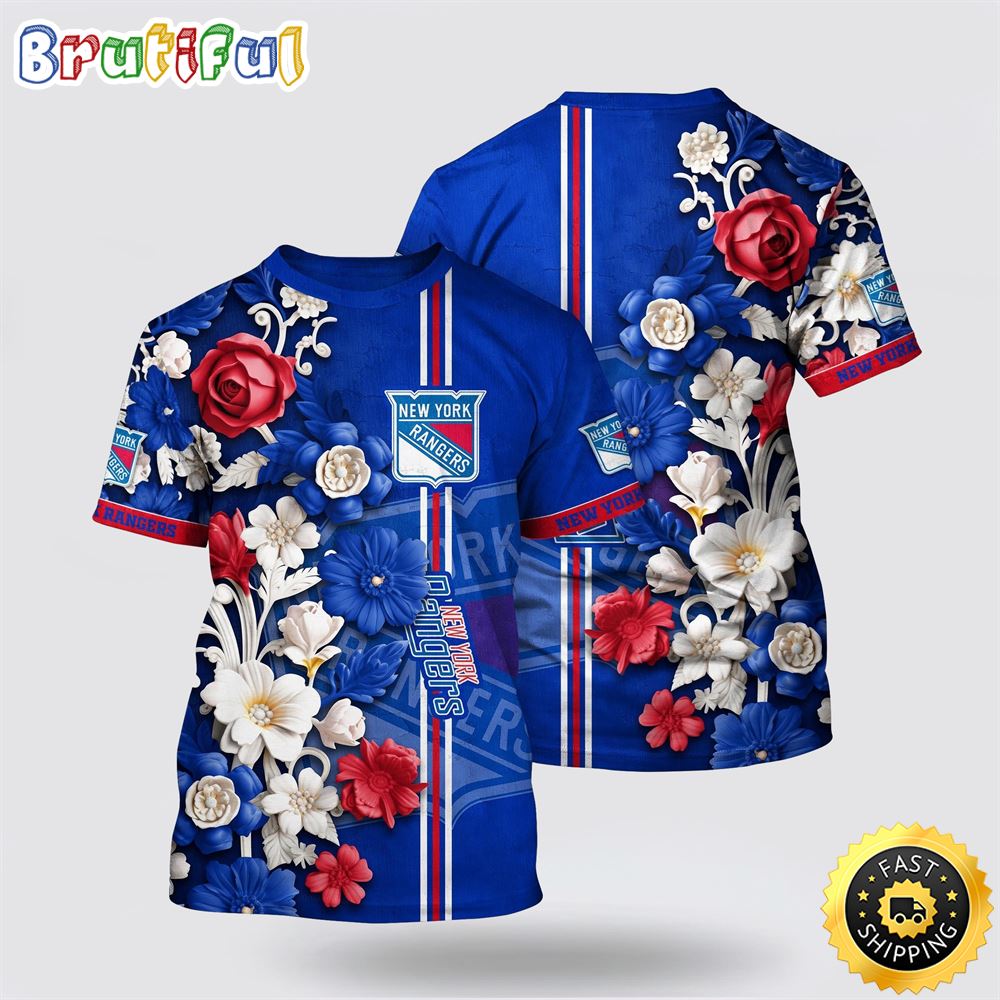 NHL New York Rangers All Over Print T Shirt Tropical Hepatica Floral Pattern Summer T Shirt