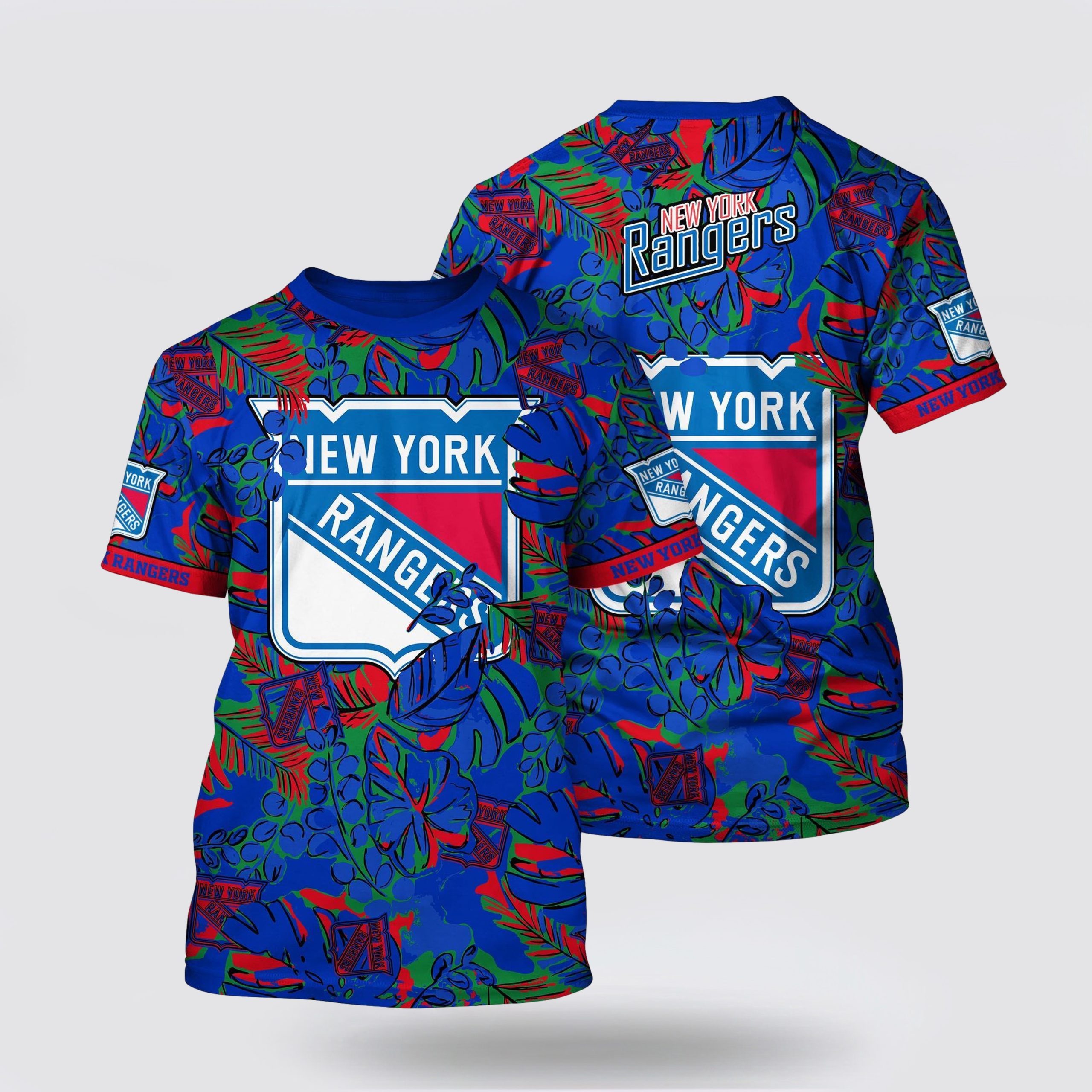 NHL New York Rangers All Over Print T Shirt Tropical Leaf Pattern Summer T Shirt