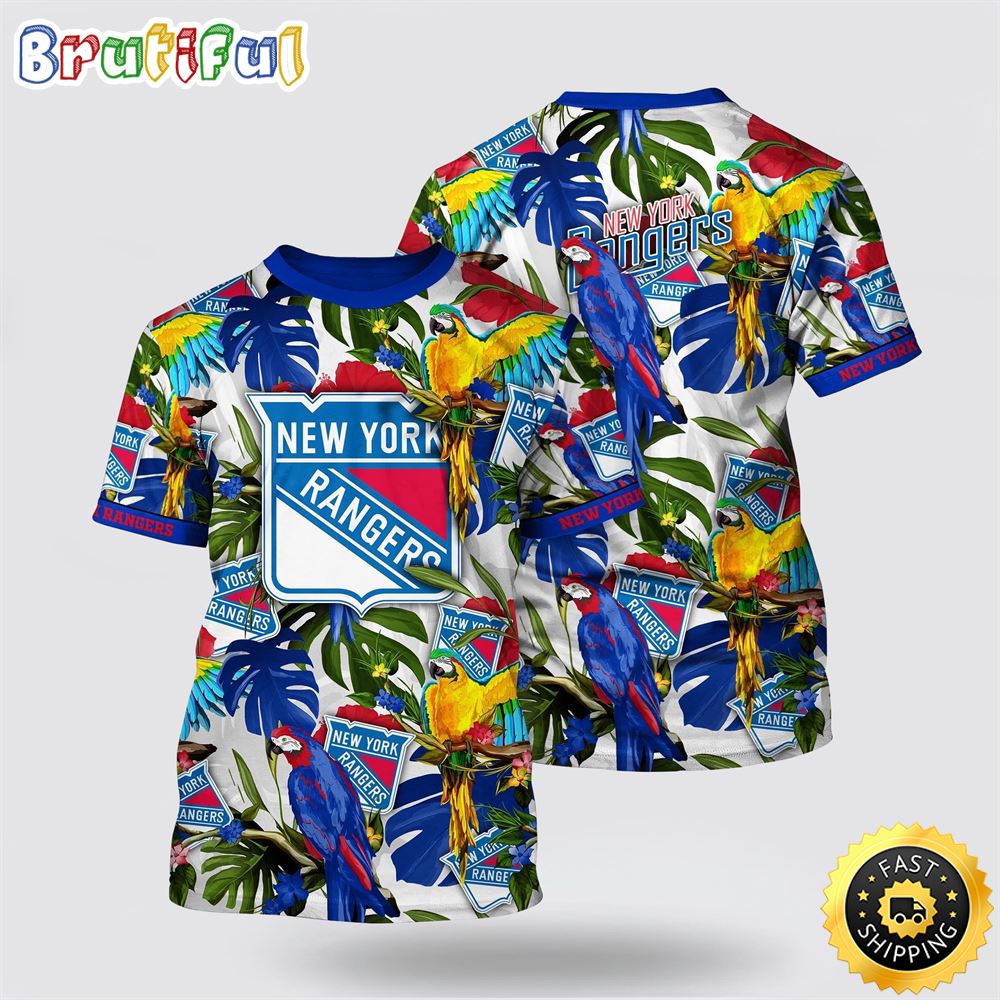NHL New York Rangers All Over Print T Shirt Tropical Parrot Pattern Summer T Shirt