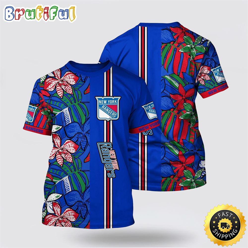 NHL New York Rangers All Over Print T Shirt Tropical Tropical Forest Floral Pattern Summer T Shirt