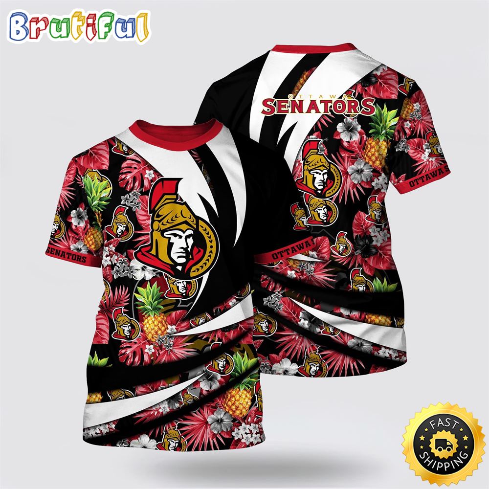 NHL Ottawa Senators All Over Print T Shirt With Tropical Pineapple Summer T Shirt