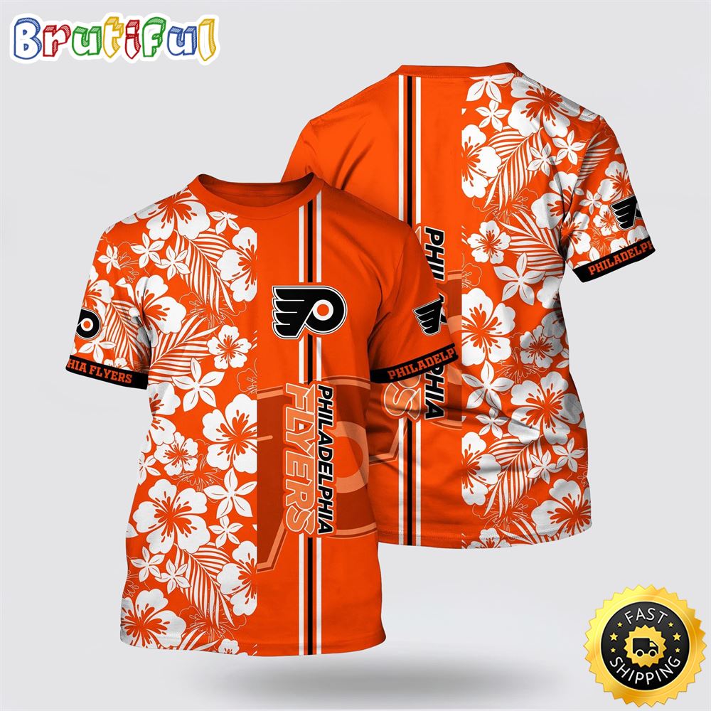 NHL Philadelphia Flyers All Over Print T Shirt Tropical Apricot Blossom Pattern Summer T Shirt