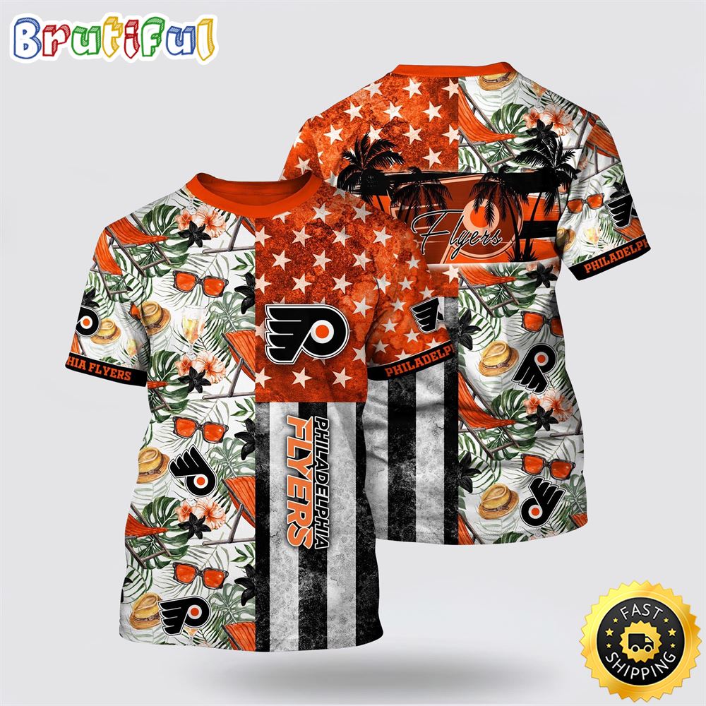 NHL Philadelphia Flyers All Over Print T Shirt Tropical Hat And Glasses Pattern Summer T Shirt