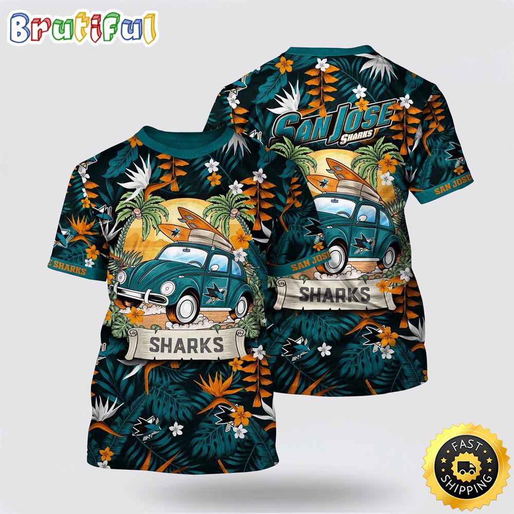 NHL San Jose Sharks All Over Print T Shirt Tropical Forest Motif Car Traveling Summer T Shirt