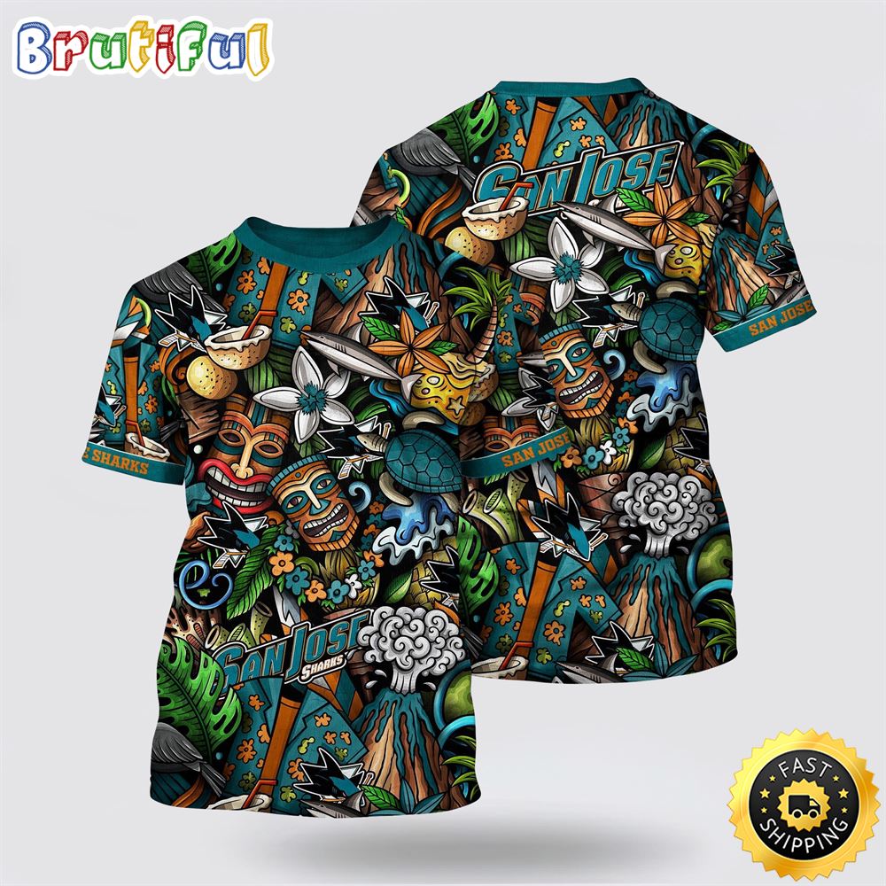 NHL San Jose Sharks All Over Print T Shirt Tropical Tiki Pattern Summer T Shirt