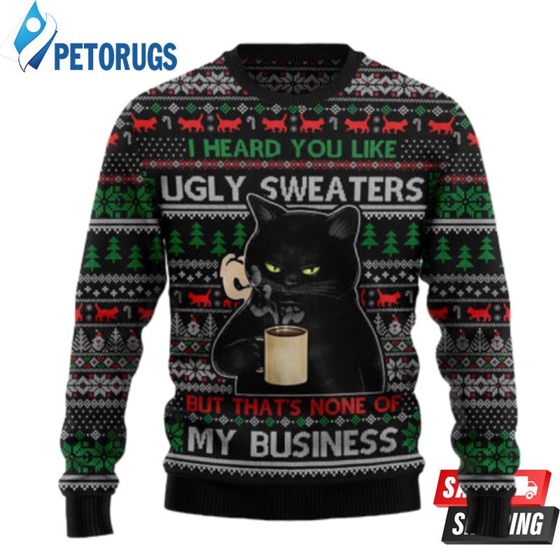 None Of My Business Black Cat Ugly Christmas Sweaters